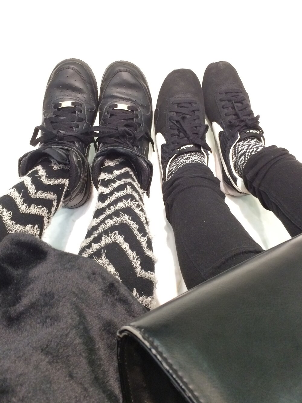 今日の足元 二人ともナイキちゃん そして黒い