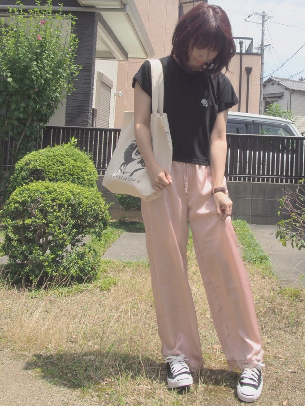 nのTシャツ/カットソー「バラ刺繍ショート丈T」を使ったコーディネート