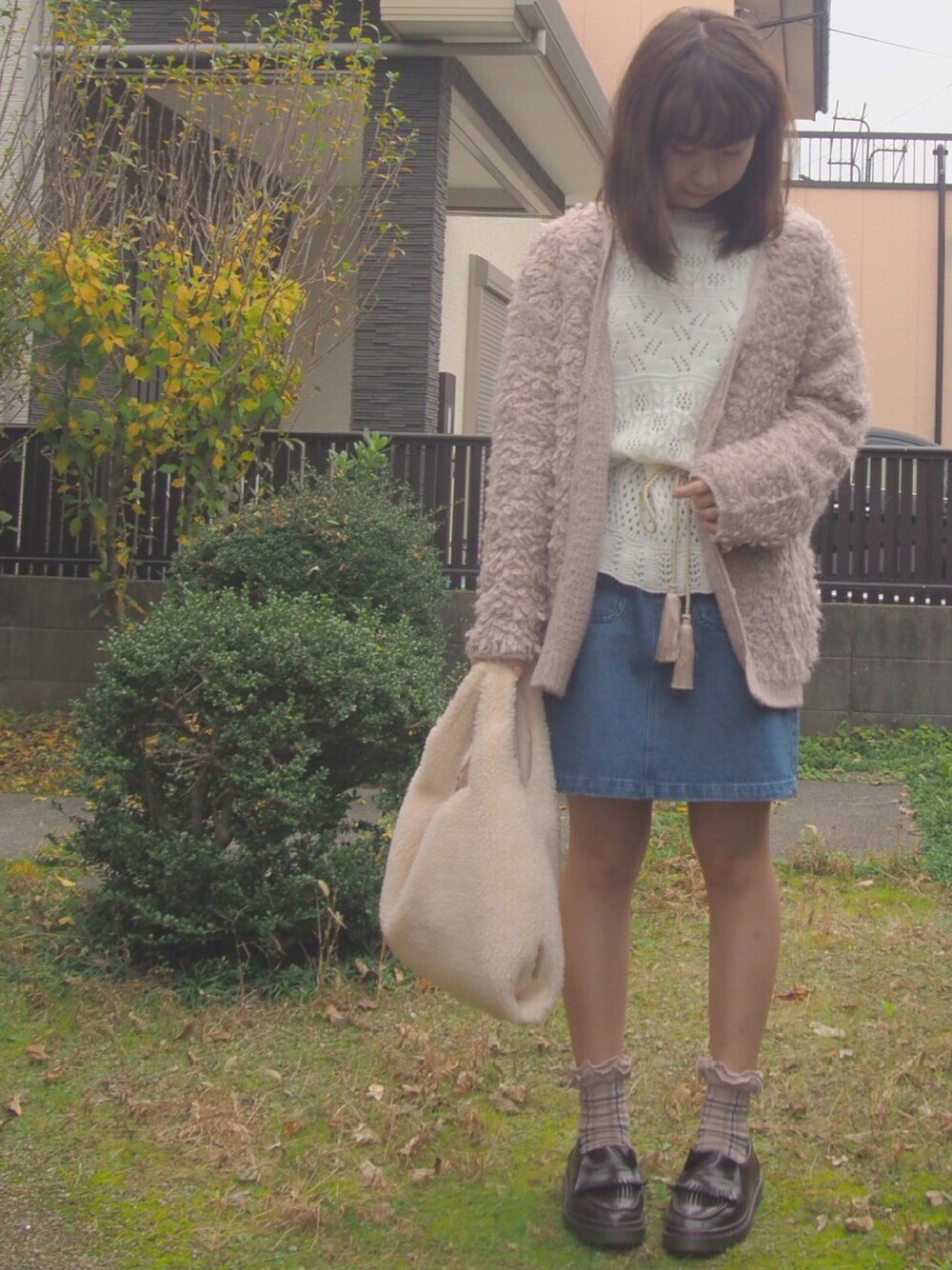nのカーディガン/ボレロ「ループ編みカーディガン」を使ったコーディネート