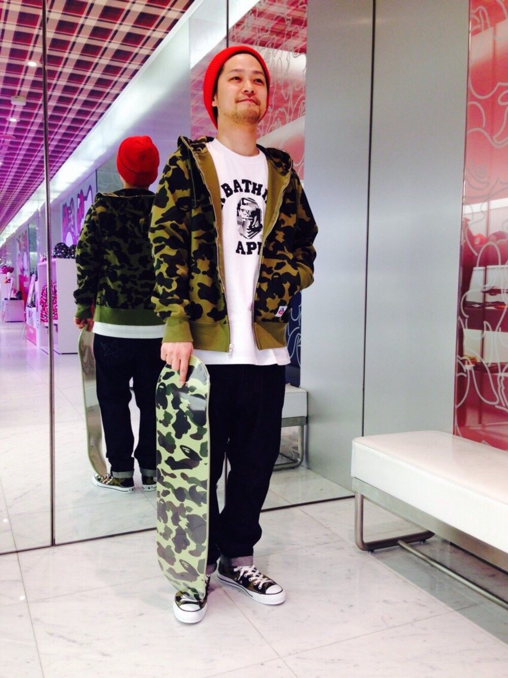 トップスとスニーカーを同色にして統一感を出しながら、トップス類はサイズアップ。 パーカーはWIND STOPPERになり、デザイン、機能性共に間違いない商品になります!