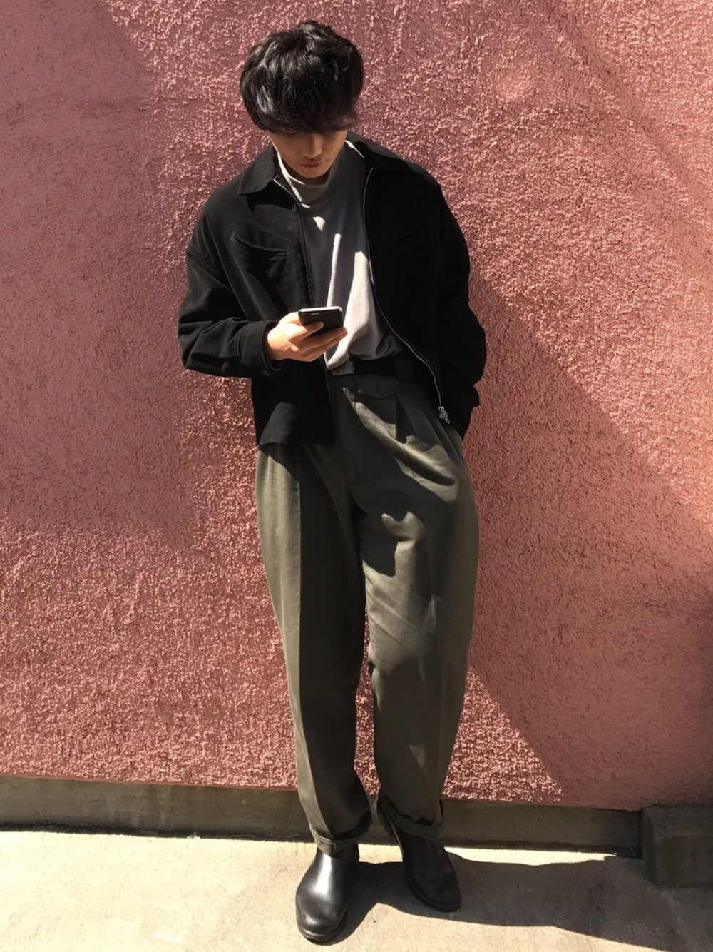 シンプルな色合いでシルエット意識してみました。 髪とアウターと靴を黒くすることによってまとまり感も意識しました。
