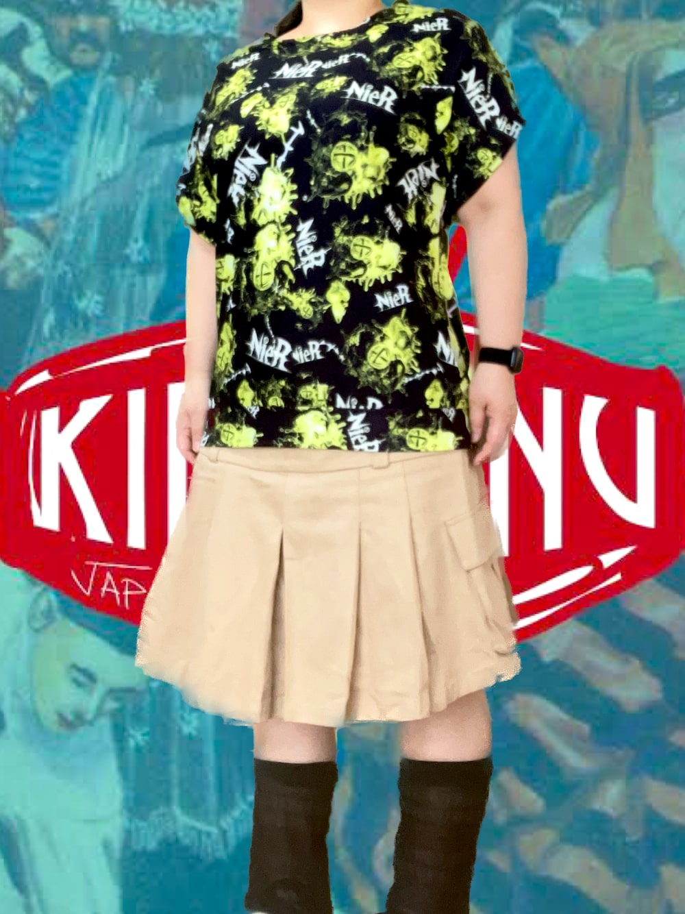 PSYCHOサイコちゃんのTシャツ/カットソー「NieR Clothing STRETCH WIDE NECK CUTSEW【YELLOW HEART BEAT】」を使ったコーディネート