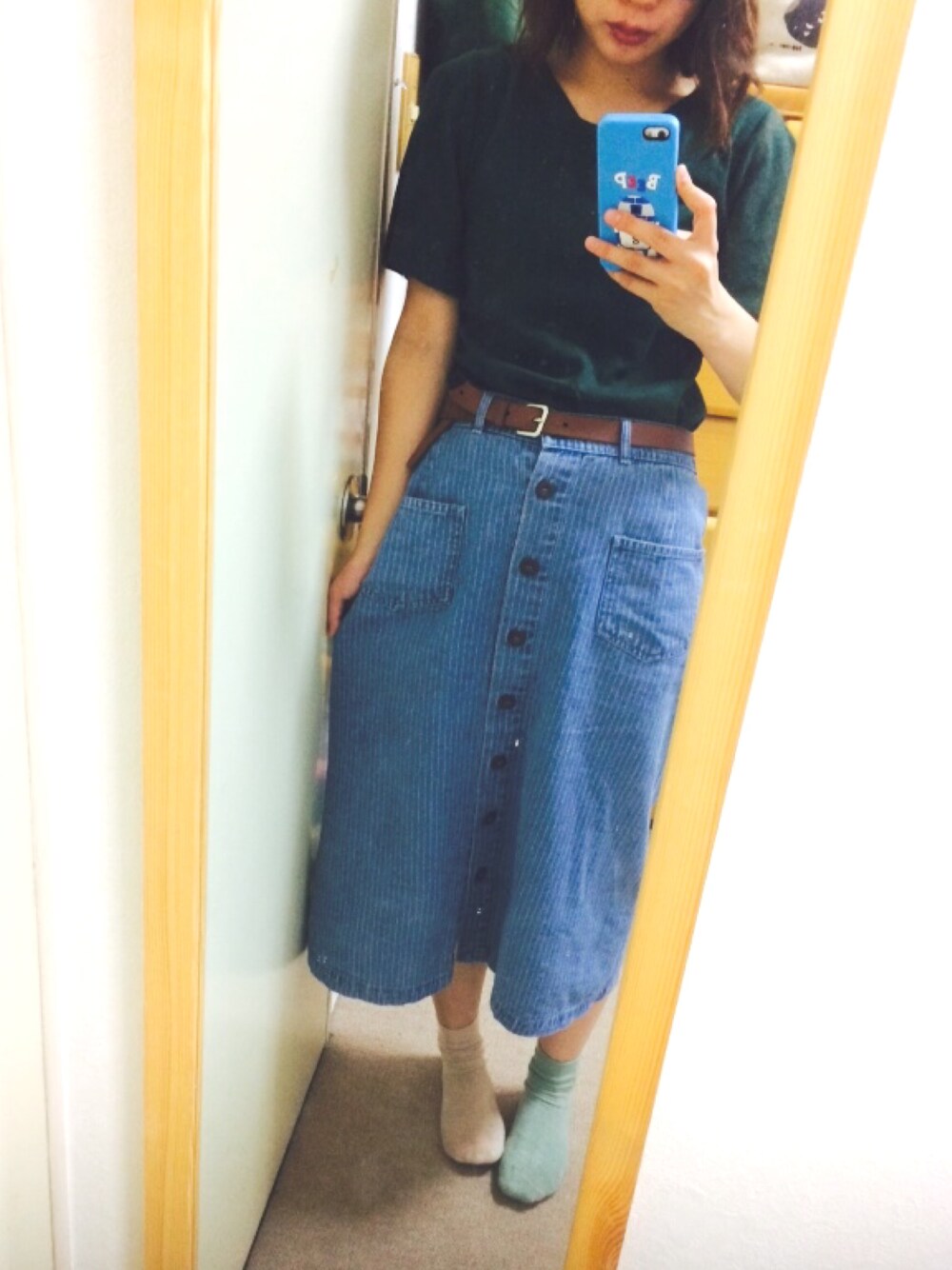 ふのスカート「前開きAラインデニムスカート」を使ったコーディネート