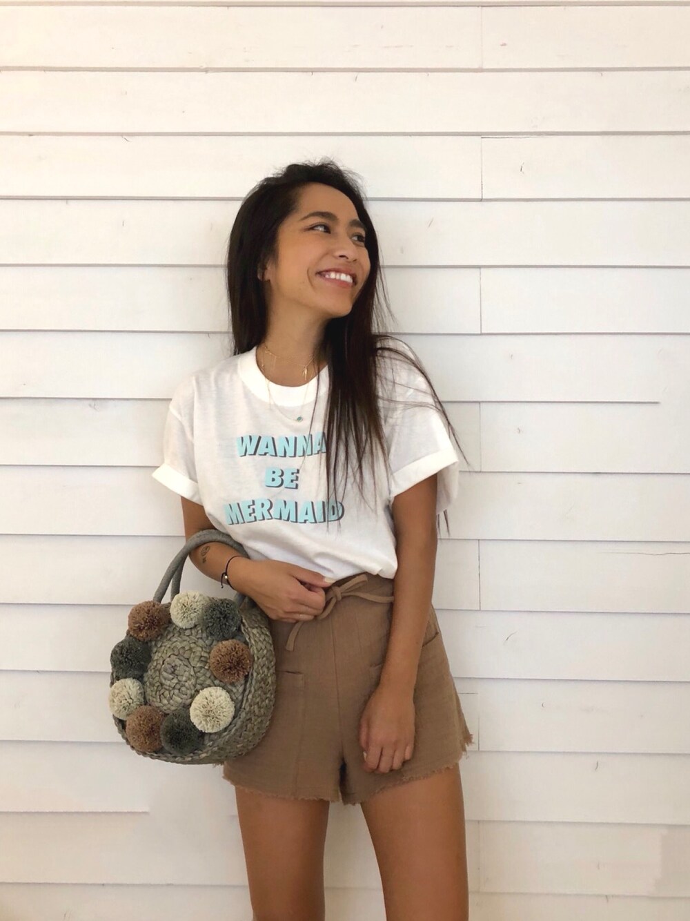 ALEXIA STAM(FLAGSHIP STORE OMOTESANDO)のかごバッグ「Pom Pom Round Straw Bag/カゴバッグ」を使ったコーディネート