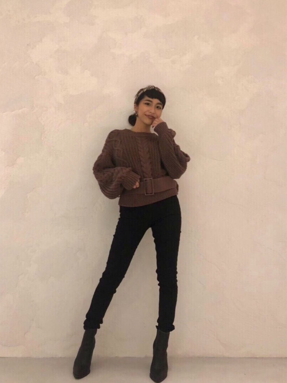 ALEXIA STAM(FLAGSHIP STORE OMOTESANDO)のニット/セーター「Belt Attached Cable Knit/ケーブルニット」を使ったコーディネート