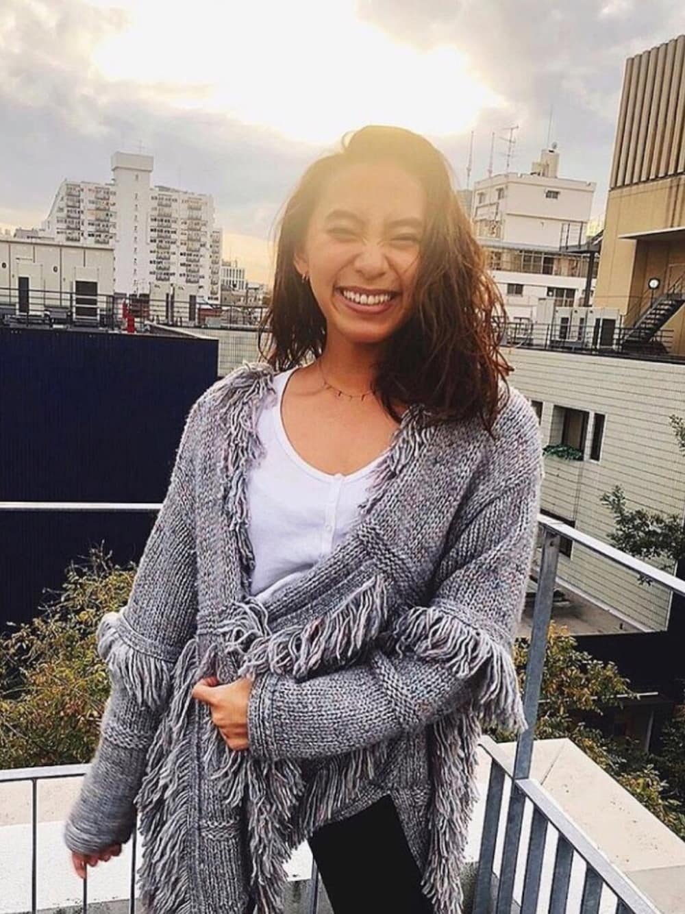ALEXIA STAM(FLAGSHIP STORE OMOTESANDO)のカーディガン/ボレロ「Fringe Mix Knit Cardigan/ニットカーディガン」を使ったコーディネート