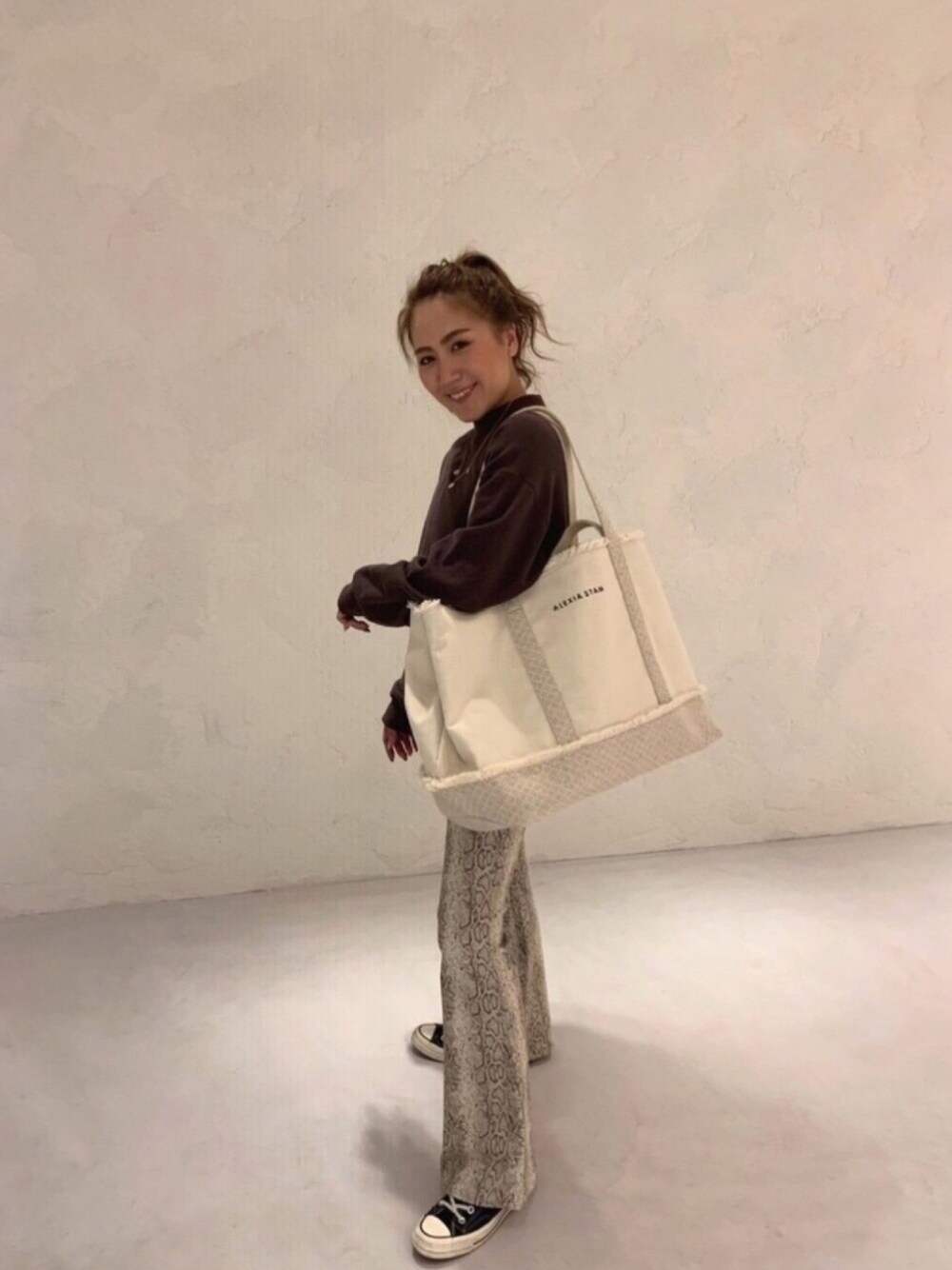 ALEXIA STAM(FLAGSHIP STORE OMOTESANDO)のトートバッグ「Switching Large Tote Bag/トートバッグ」を使ったコーディネート