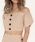 ALEXIA STAM(FLAGSHIP STORE OMOTESANDO)のTシャツ/カットソー「Front Button Off The Shoulder Crop Top/フロントボタンオフショルダークロップトップ」を使ったコーディネート