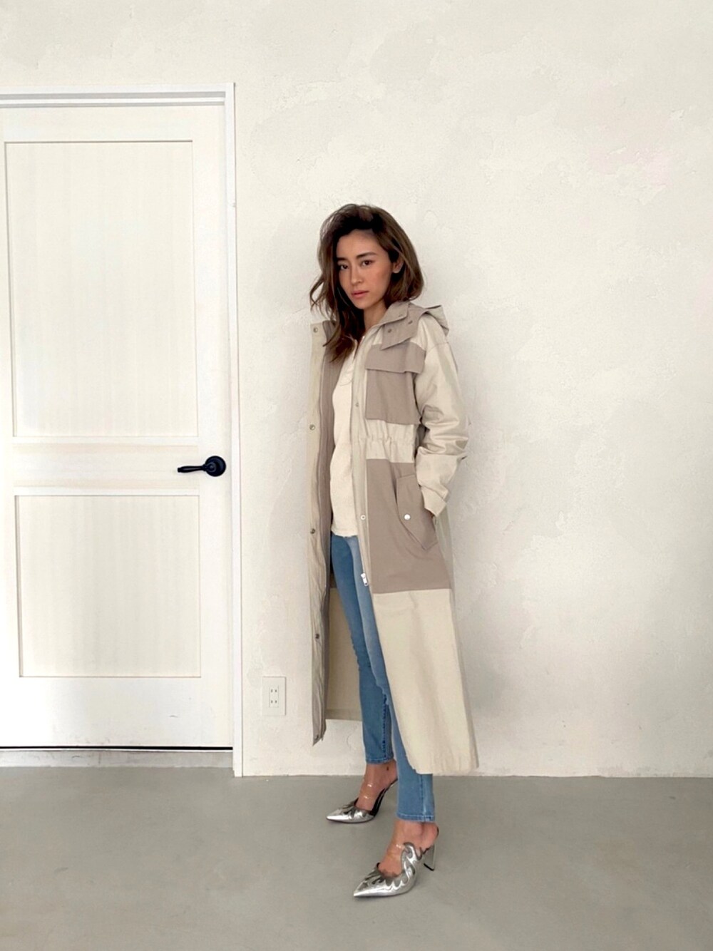 ALEXIA STAM(FLAGSHIP STORE OMOTESANDO)のミリタリージャケット「Contrast Oversized Military Coat/コントラストオーバーサイズミリタリーコート」を使ったコーディネート