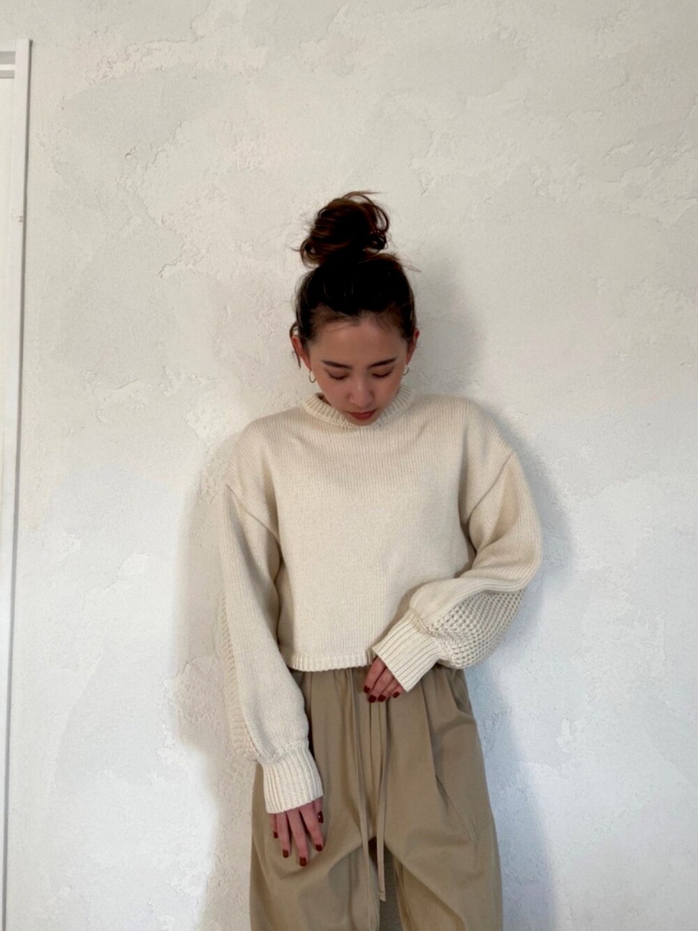 ALEXIA STAM(FLAGSHIP STORE OMOTESANDO)のニット/セーター「Puff Sleeve Cropped Knit Top/パフスリーブクロップドニットトップ」を使ったコーディネート
