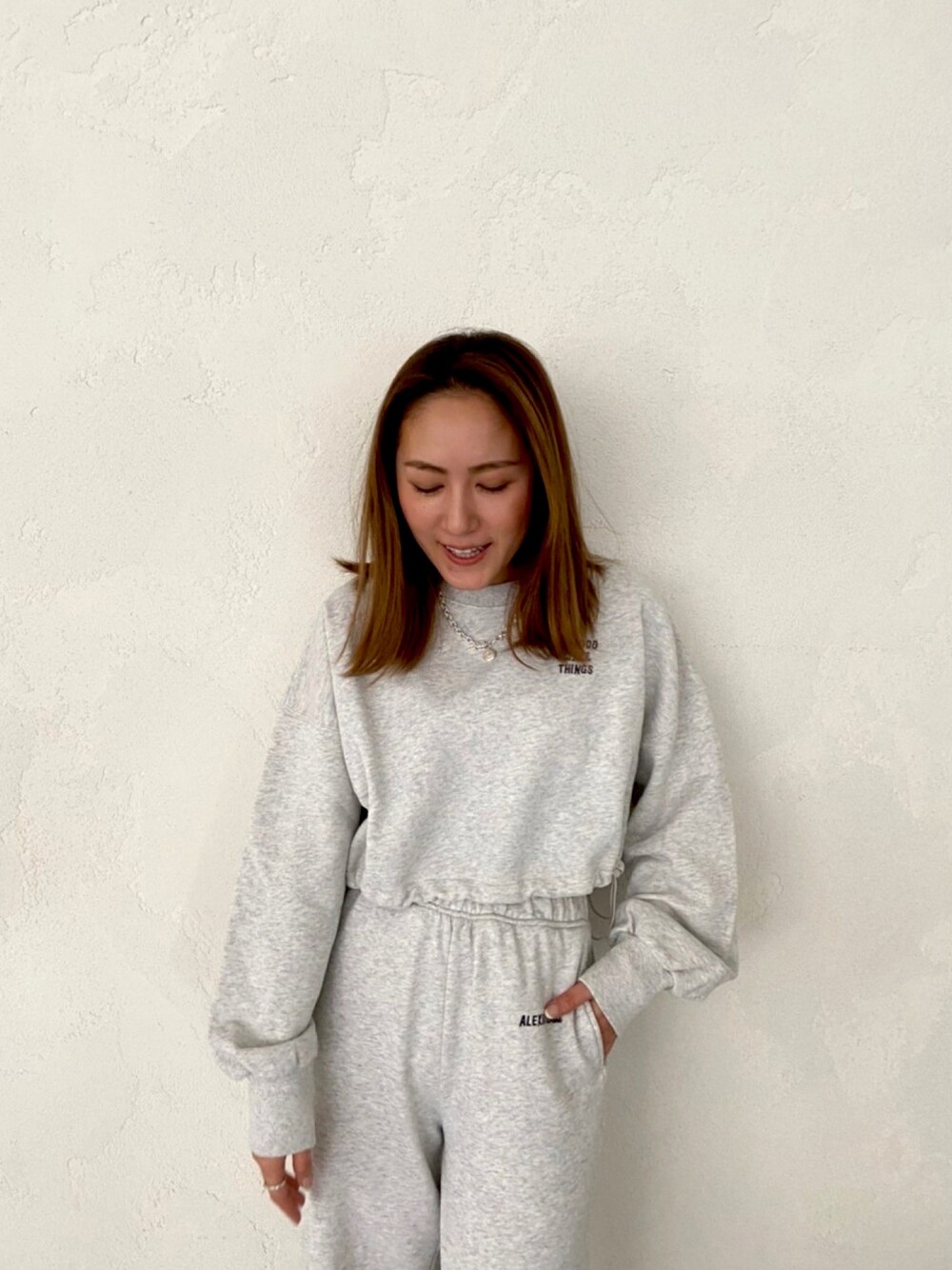 ALEXIA STAM(FLAGSHIP STORE OMOTESANDO)のスウェット「Logo Plain Long Sleeve Cropped Sweatshirt/ロゴプレーンロングスリーブクロップドスウェットシャツ」を使ったコーディネート