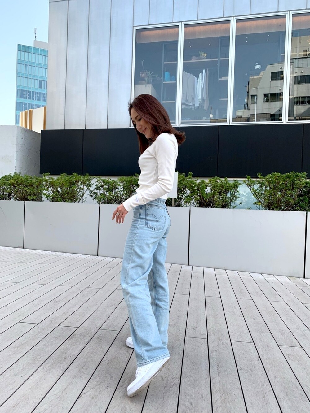 ALEXIA STAM(FLAGSHIP STORE OMOTESANDO)のTシャツ/カットソー「【Jelly 6月号掲載】Long Sleeve Rib Cropped Top/ロングスリーブリブクロップドトップ」を使ったコーディネート
