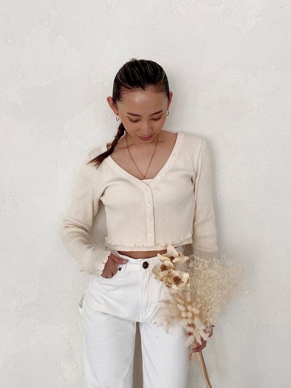 ALEXIA STAM(FLAGSHIP STORE OMOTESANDO)のカーディガン/ボレロ「【ViVi 6月号掲載】Cropped Mellow Hem Cardigan & Camisole Set/クロップドメローヘムカーディガン&キャミソールセット」を使ったコーディネート