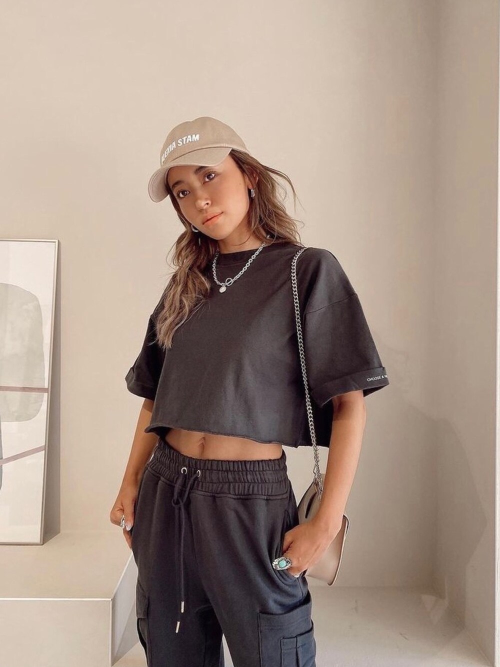 ALEXIA STAM(FLAGSHIP STORE OMOTESANDO)のTシャツ/カットソー「Cropped Oversized Tee/クロップドオーバーサイズティー」を使ったコーディネート