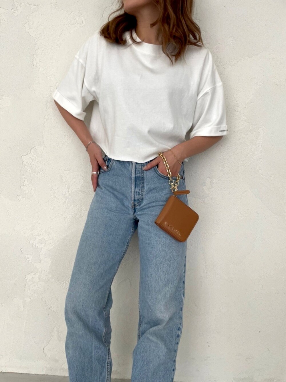 ALEXIA STAM(FLAGSHIP STORE OMOTESANDO)のTシャツ/カットソー「Cropped Oversized Tee/クロップドオーバーサイズティー」を使ったコーディネート