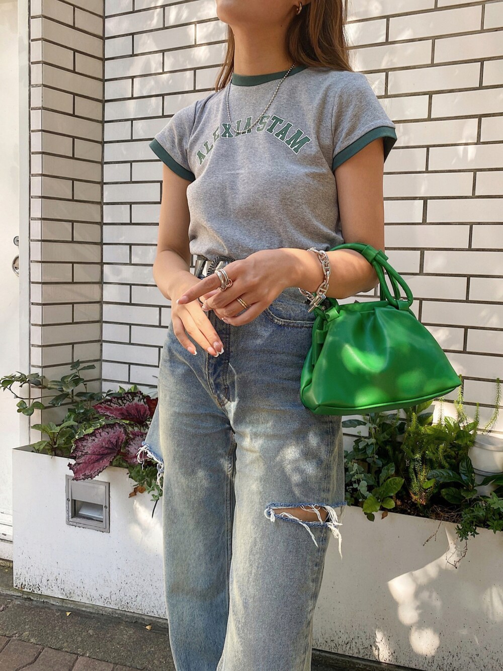 ALEXIA STAM(FLAGSHIP STORE OMOTESANDO)のTシャツ/カットソー「Front Arch Logo Ringer Tee/フリントアーチロゴリンガーティー」を使ったコーディネート