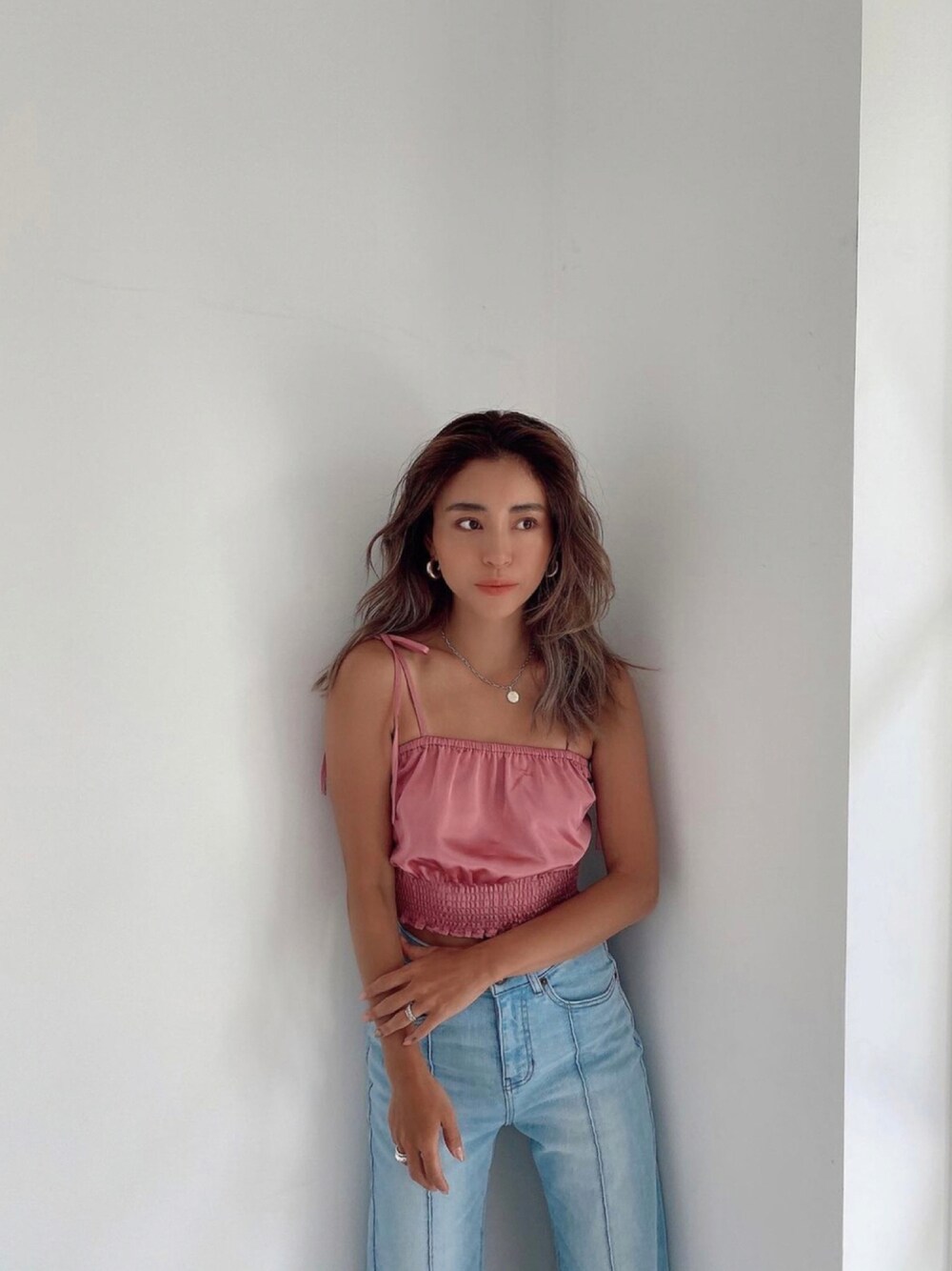 ALEXIA STAM(FLAGSHIP STORE OMOTESANDO)のキャミソール「Satin Shirring Camisole/サテンシャーリングキャミソール」を使ったコーディネート