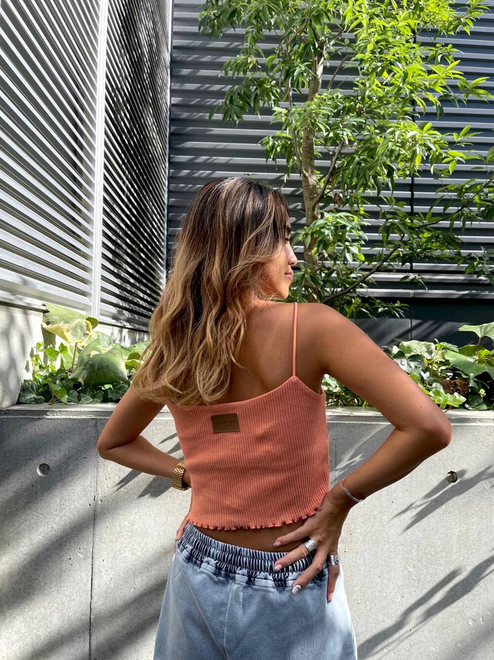 ALEXIA STAM(FLAGSHIP STORE OMOTESANDO)のキャミソール「Mellow Hem Rib Camisole/メロウヘムリブキャミソール」を使ったコーディネート