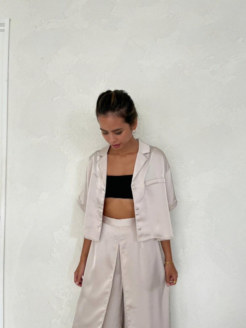 ALEXIA STAM(FLAGSHIP STORE OMOTESANDO)のシャツ/ブラウス「Satin Open Collar Shirt/サテンオープンカラーシャツ」を使ったコーディネート