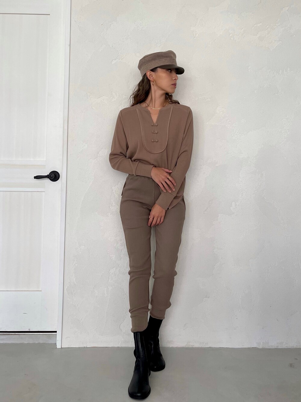ALEXIA STAM(FLAGSHIP STORE OMOTESANDO)のTシャツ/カットソー「China Button Rib Knit Top/チャイナボタンリブニットトップ」を使ったコーディネート