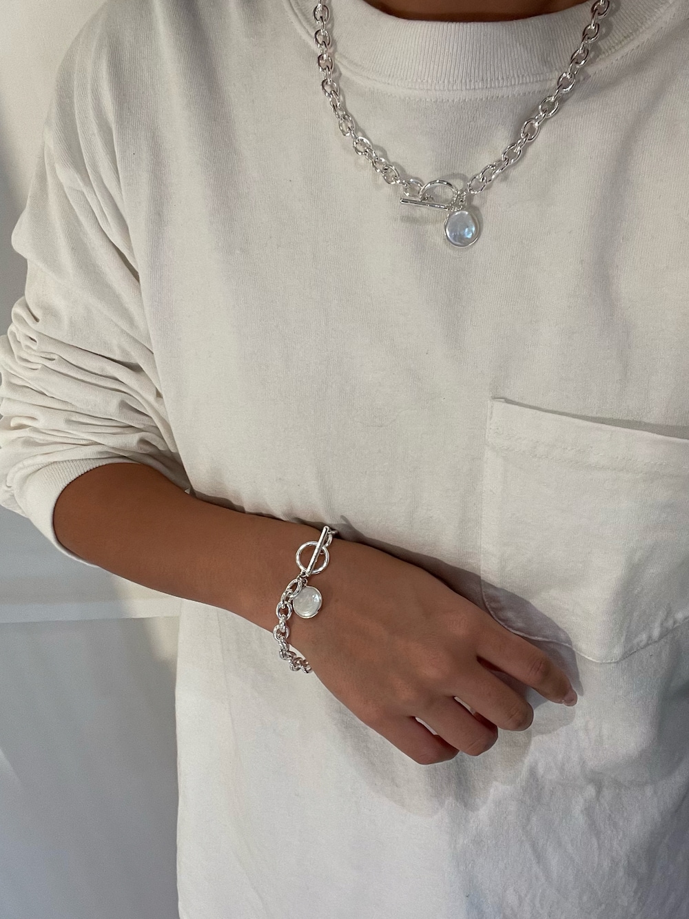 ALEXIA STAM(FLAGSHIP STORE OMOTESANDO)のブレスレット「Pearl Toggle Clasp Bracelet/パールトグルクラスプブレスレット」を使ったコーディネート
