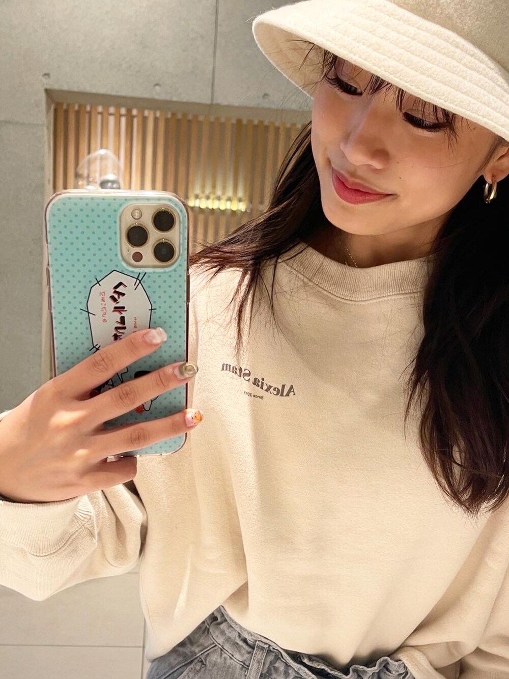 ALEXIA STAM(FLAGSHIP STORE OMOTESANDO)のスウェット「Logo Raglan Sleeve Sweatshirt/ロゴラグランスリーブスウェットシャツ」を使ったコーディネート
