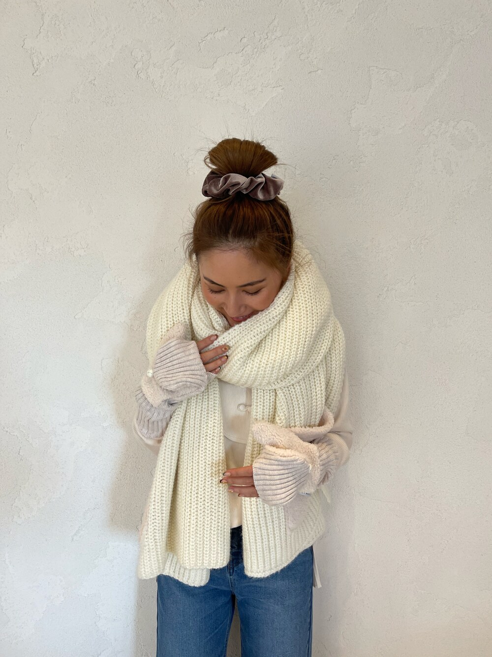 ALEXIA STAM(FLAGSHIP STORE OMOTESANDO)のマフラー「Boa Pocket Knit Scarf/ボアポケットニットスカーフ」を使ったコーディネート