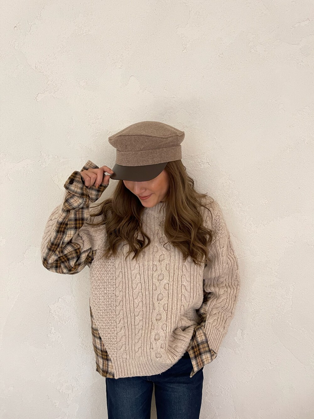 ALEXIA STAM(FLAGSHIP STORE OMOTESANDO)のニット/セーター「Shirt Docking Cable Knit Top/シャツドッキングケーブルニットトップ」を使ったコーディネート