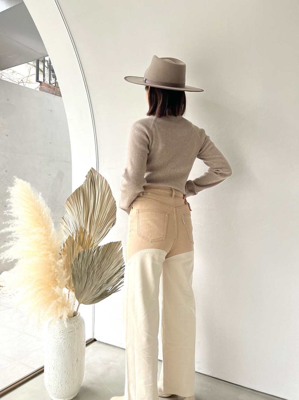 ALEXIA STAM(FLAGSHIP STORE OMOTESANDO)のハット「Leather Ribbon Fedra Hat/レザーリボンフェドラハット」を使ったコーディネート