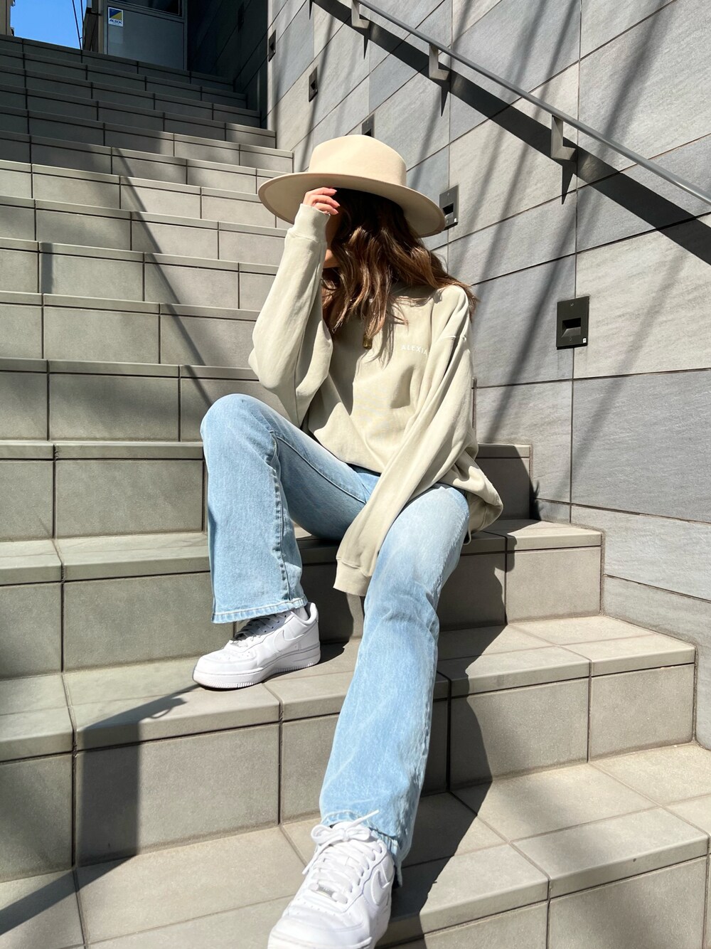 ALEXIA STAM(FLAGSHIP STORE OMOTESANDO)のスウェット「Logo Pigment Dyed Sweatshirt/ロゴピグメントダイスウェットシャツ」を使ったコーディネート
