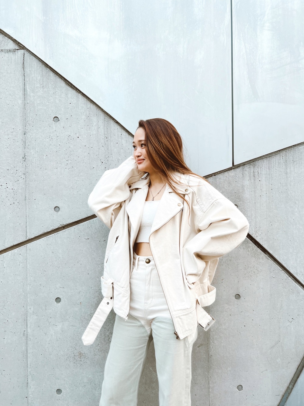 ALEXIA STAM(FLAGSHIP STORE OMOTESANDO)のライダースジャケット「Oversized Biker Jacket/オーバーサイズバイカージャケット」を使ったコーディネート