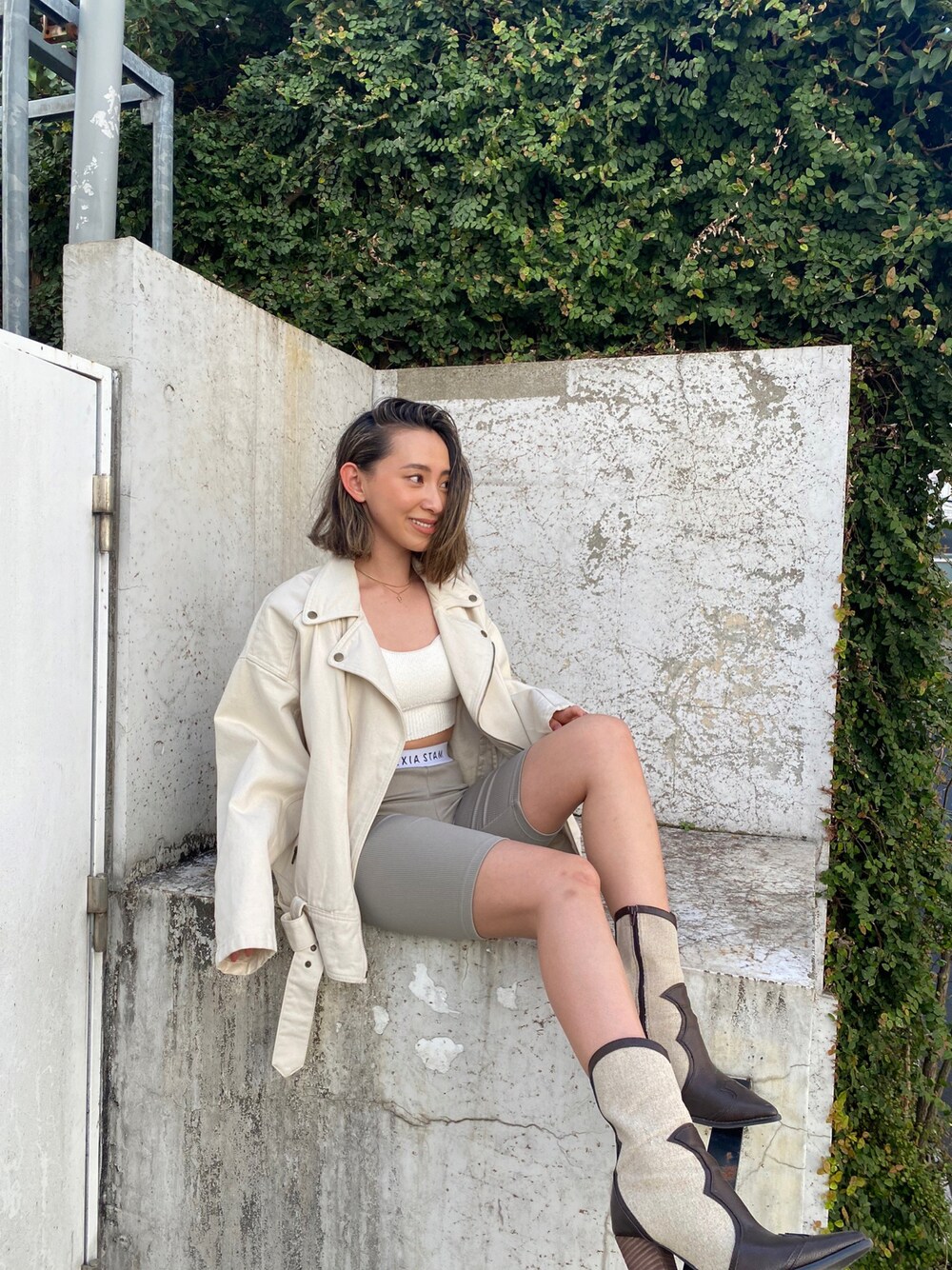 ALEXIA STAM(FLAGSHIP STORE OMOTESANDO)のライダースジャケット「Oversized Biker Jacket/オーバーサイズバイカージャケット」を使ったコーディネート