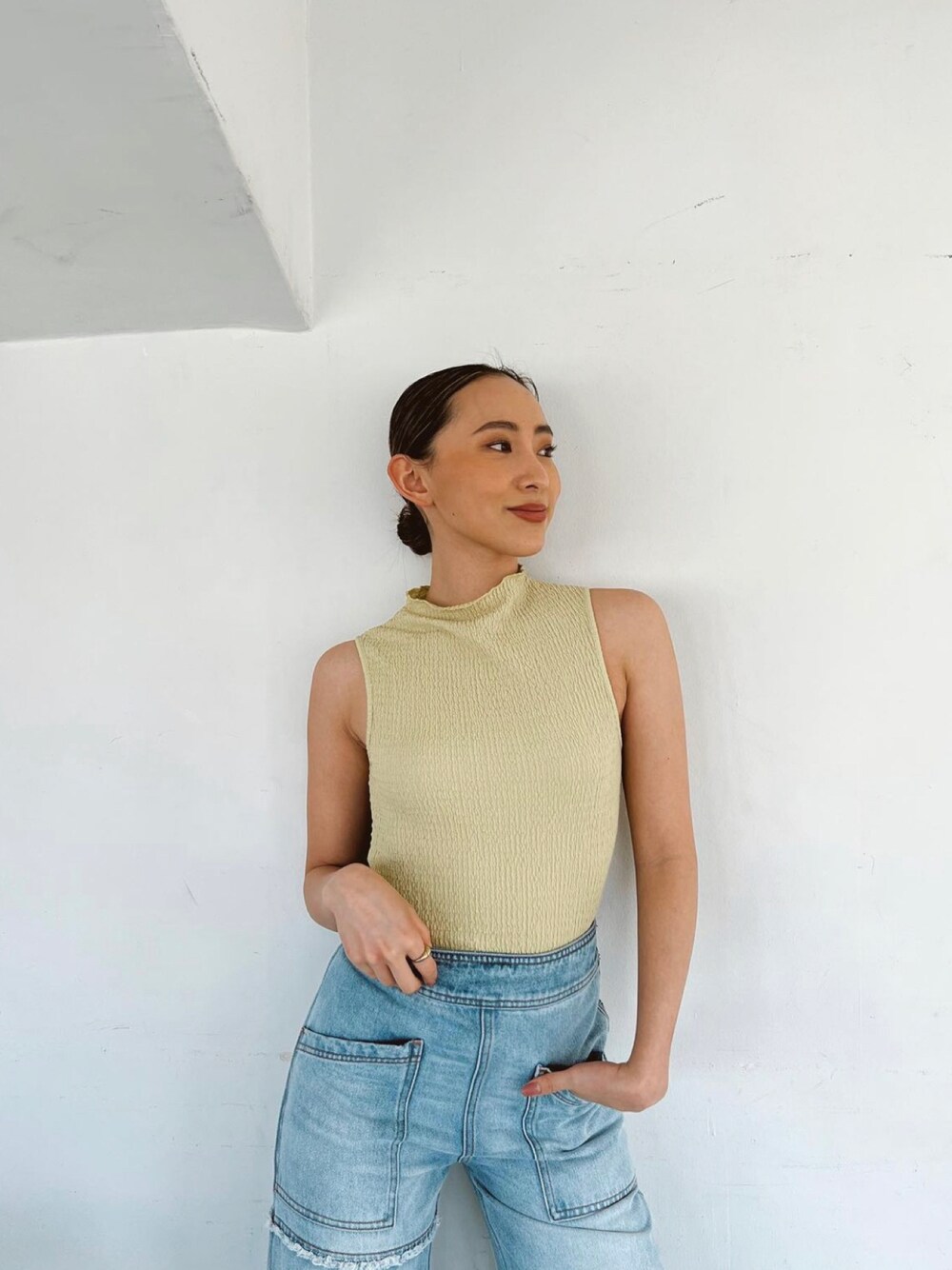 ALEXIA STAM(FLAGSHIP STORE OMOTESANDO)のTシャツ/カットソー「Sleeveless High Neck Top/スリーブレスハイネックトップ」を使ったコーディネート