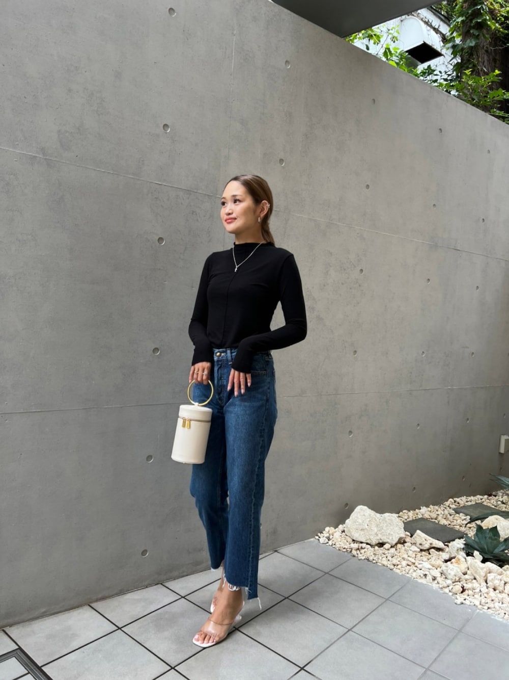 ALEXIA STAM(FLAGSHIP STORE OMOTESANDO)のTシャツ/カットソー「Basic Sheer High Neck Long Sleeve Top/ベーシックシアーハイネックロングスリーブトップ」を使ったコーディネート