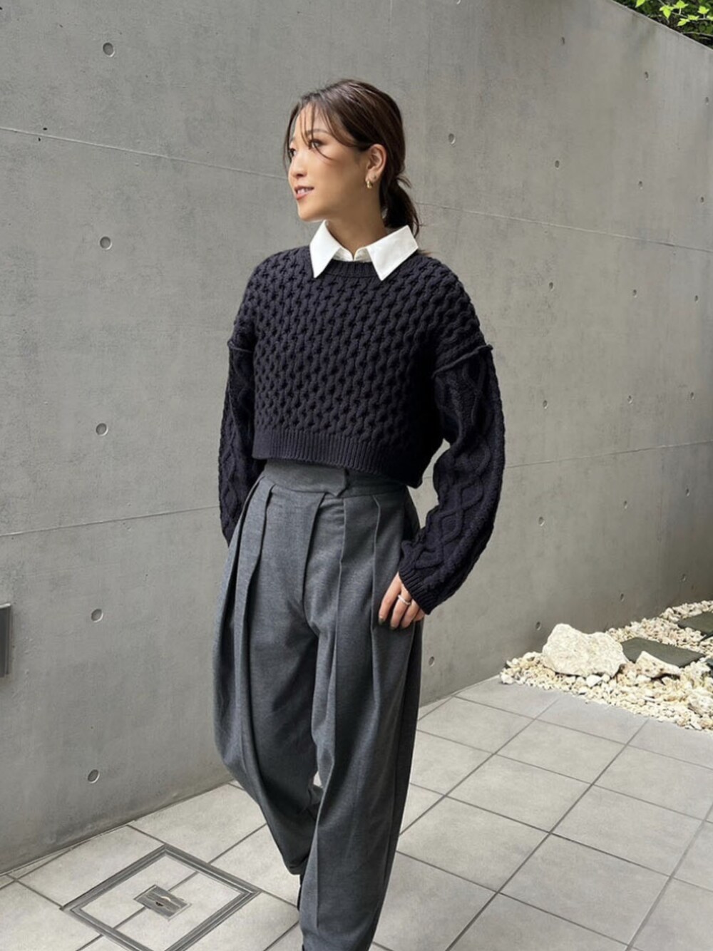 ALEXIA STAM(FLAGSHIP STORE OMOTESANDO)のニット/セーター「Aran Cropped Knit Top /アランクロップドニットトップ」を使ったコーディネート