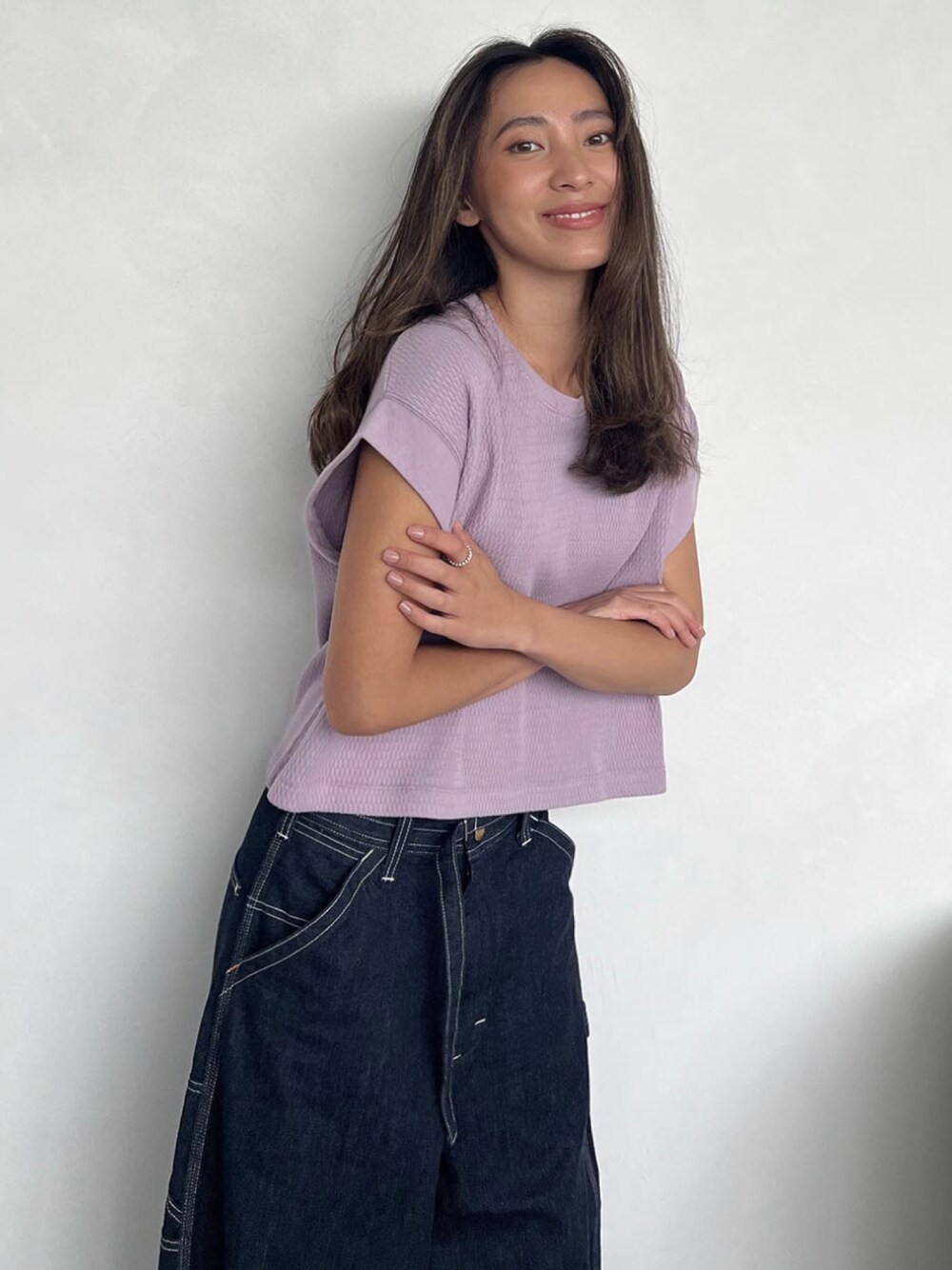 ALEXIA STAM(FLAGSHIP STORE OMOTESANDO)のTシャツ/カットソー「Honeycomb Waffle Sleeveless Top /ハニカムスリーブレストップス」を使ったコーディネート