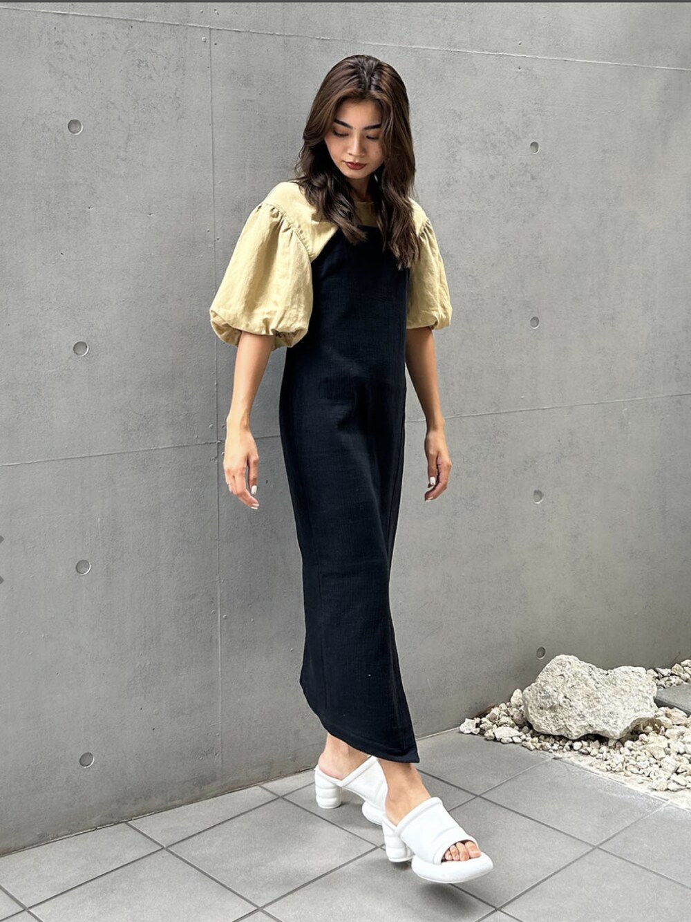 ALEXIA STAM(FLAGSHIP STORE OMOTESANDO)のワンピース「Hem Slit Camisole Dress / ヘムスリットキャミワンピース」を使ったコーディネート