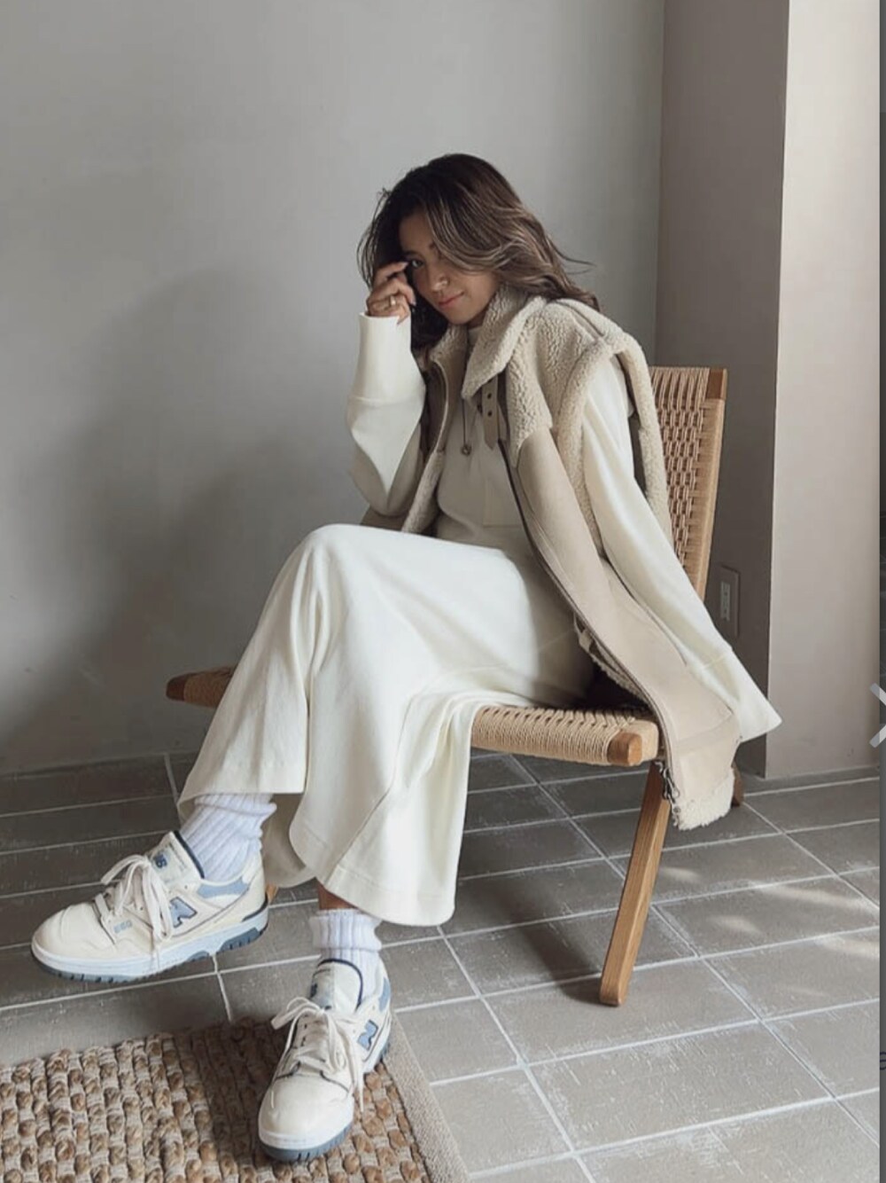 ALEXIA STAM(FLAGSHIP STORE OMOTESANDO)のベスト「Oversized Boa Eco Leather Vest /ボア×エコレザーベストジャケット」を使ったコーディネート