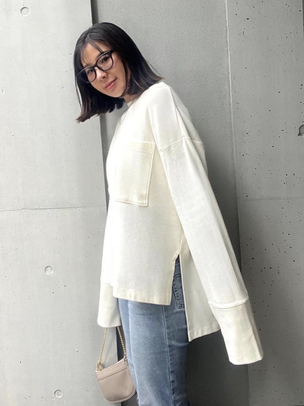 ALEXIA STAM(FLAGSHIP STORE OMOTESANDO)のTシャツ/カットソー「Oversized Front Pocket Long Sleeve Top /フロントポケットビッグトップス」を使ったコーディネート