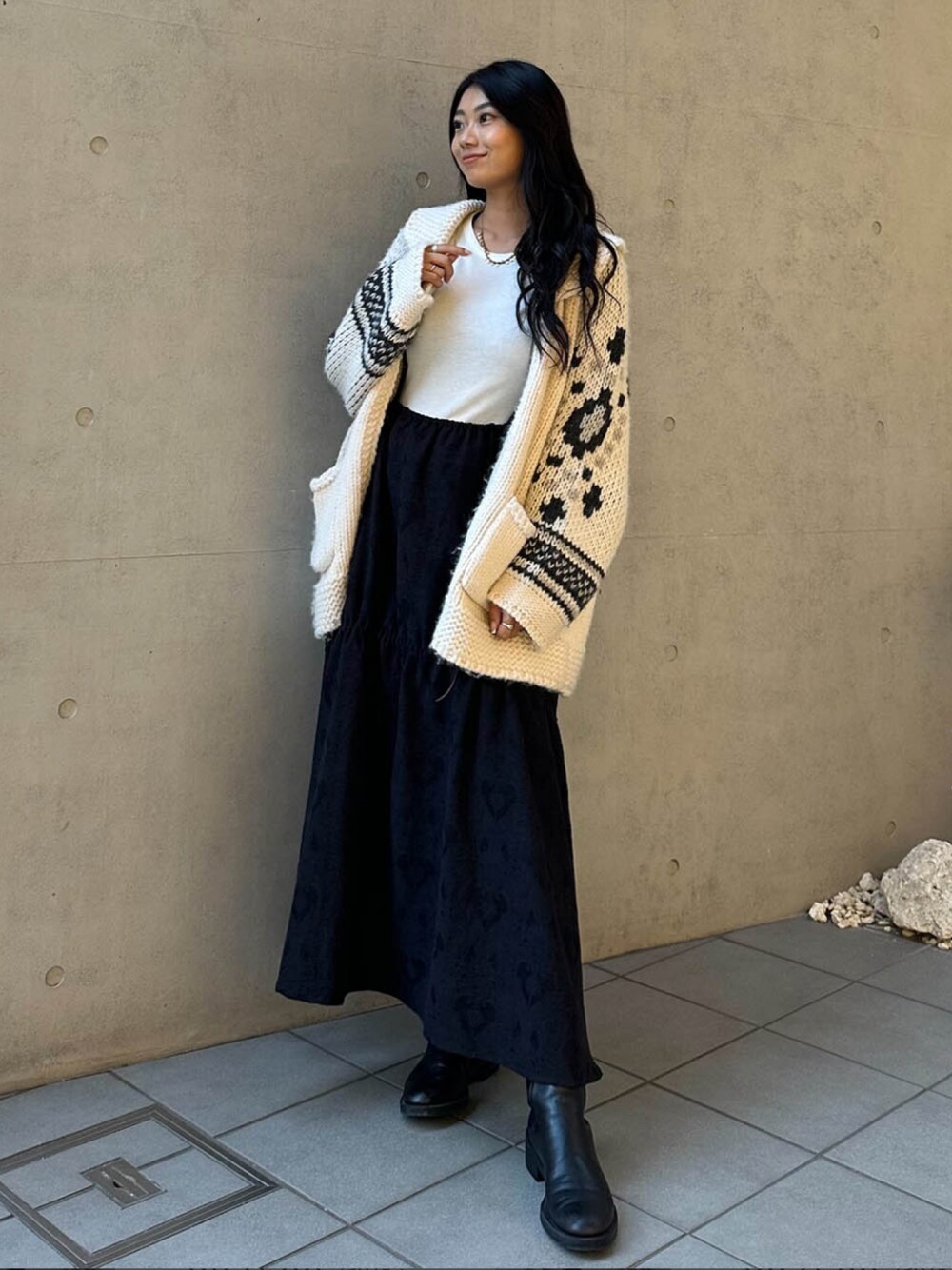 ALEXIA STAM(FLAGSHIP STORE OMOTESANDO)のカーディガン/ボレロ「Cowichan Knit Jacket /カウチンニットジャケット」を使ったコーディネート