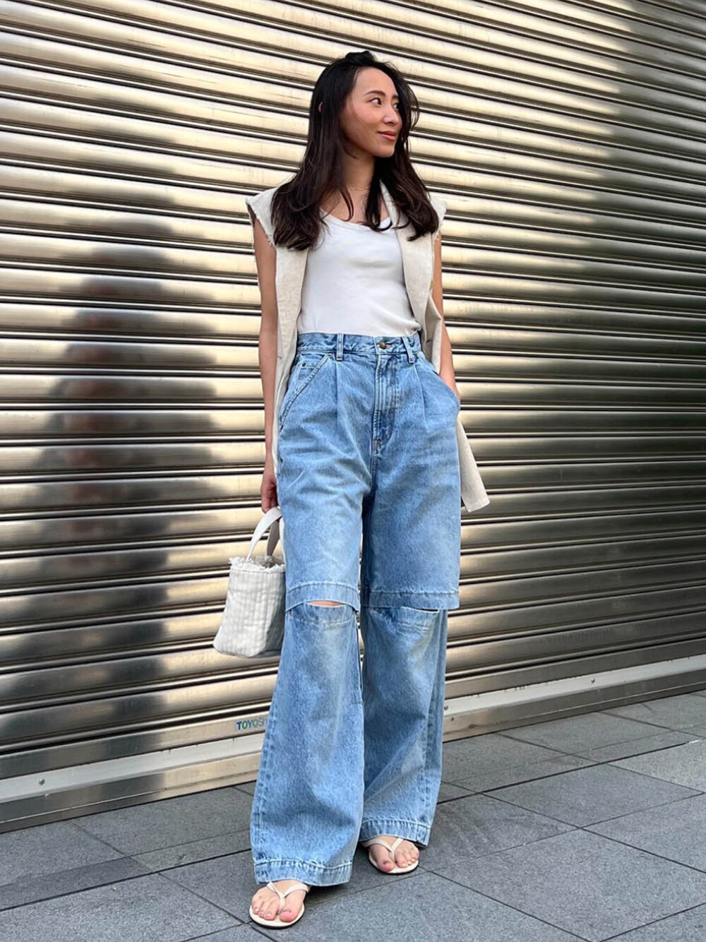 ALEXIA STAM(FLAGSHIP STORE OMOTESANDO)のデニムパンツ「Slash Knee Wide Denim Pants /ニースラッシュワイドパンツ」を使ったコーディネート