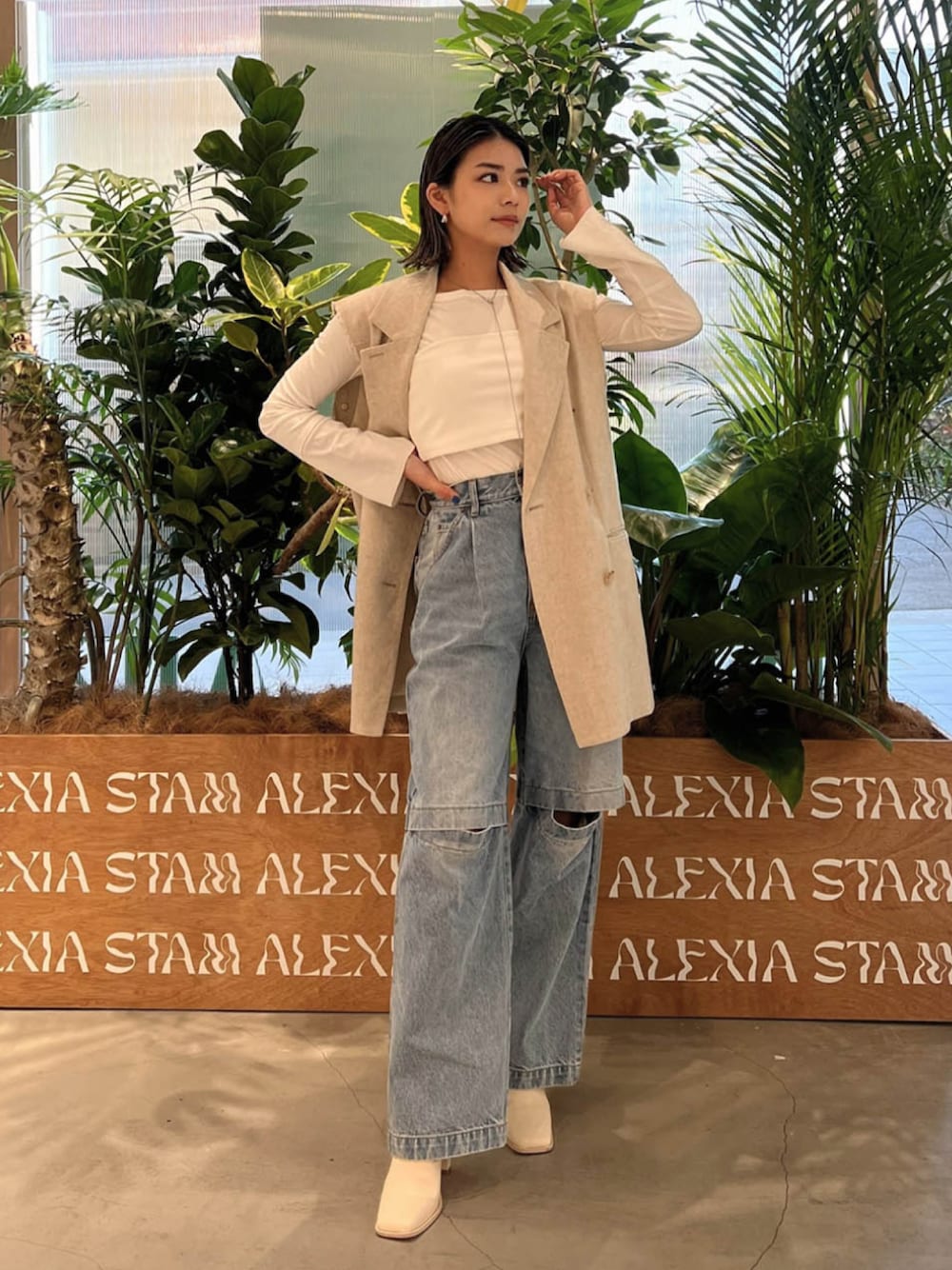 ALEXIA STAM(FLAGSHIP STORE OMOTESANDO)のデニムパンツ「Slash Knee Wide Denim Pants /ニースラッシュワイドパンツ」を使ったコーディネート