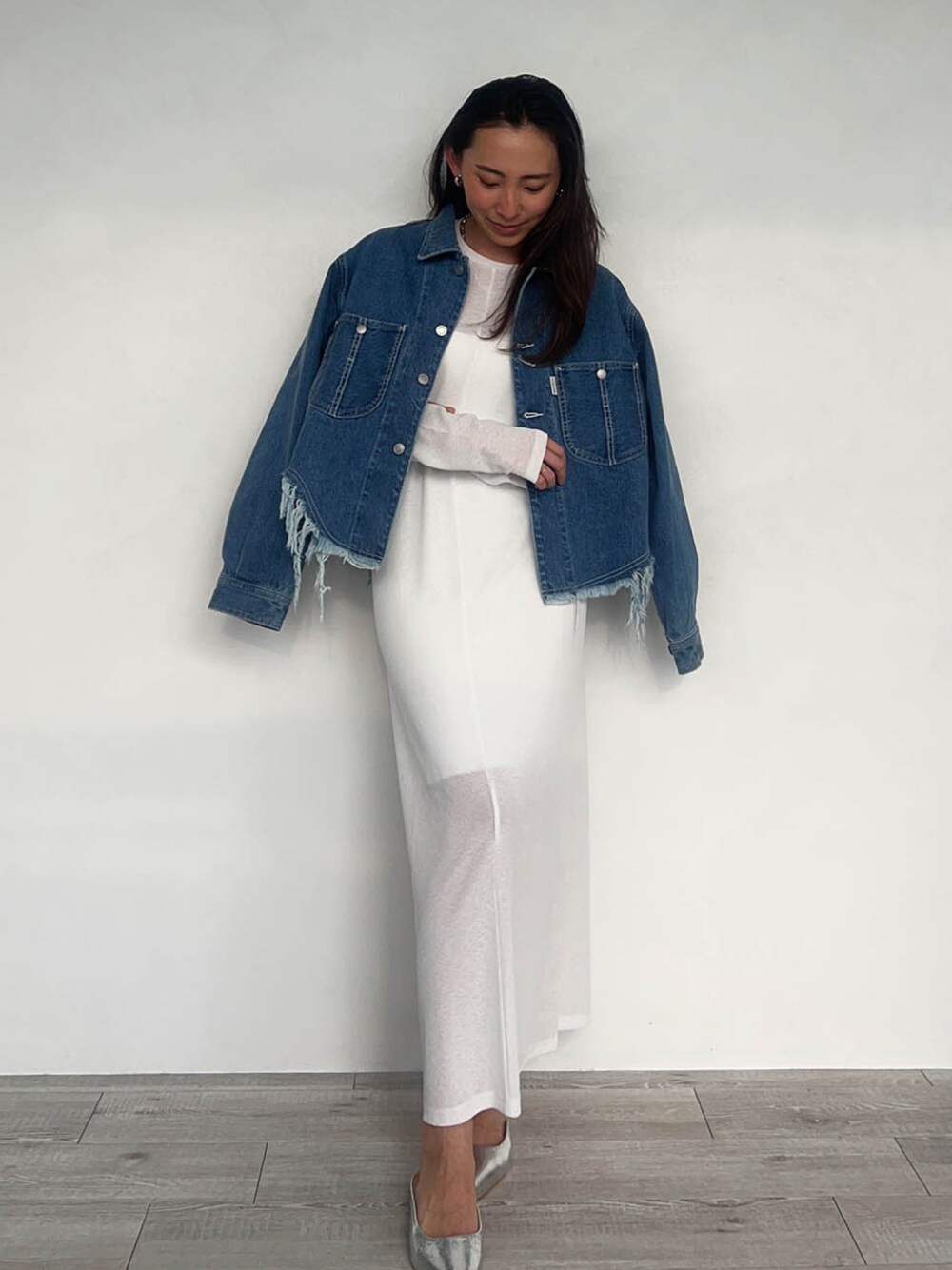 ALEXIA STAM(FLAGSHIP STORE OMOTESANDO)のデニムジャケット「Fringe Hem Denim Jacket /ダメージデニムジャケット」を使ったコーディネート