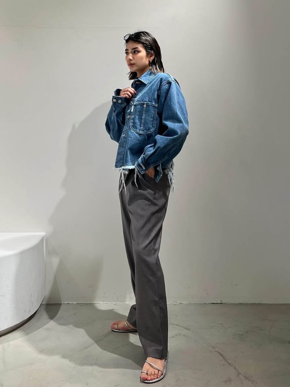 ALEXIA STAM(FLAGSHIP STORE OMOTESANDO)のデニムジャケット「Fringe Hem Denim Jacket /ダメージデニムジャケット」を使ったコーディネート