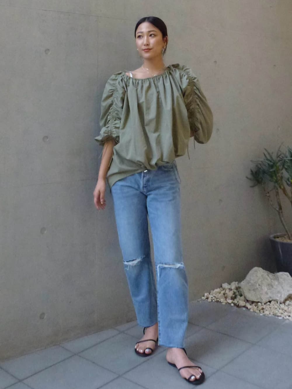 ALEXIA STAM(FLAGSHIP STORE OMOTESANDO)のデニムパンツ「Cut Off Waist Straight Denim Pants /カットウエストデニムパンツ」を使ったコーディネート