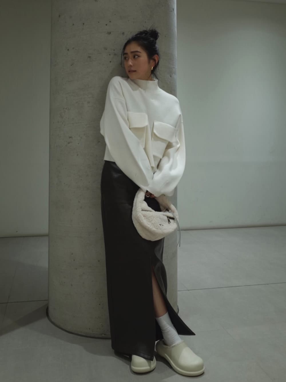ALEXIA STAM(FLAGSHIP STORE OMOTESANDO)のスカート「Eco Leather Long Skirt /フェイクレザーロングスカート」を使ったコーディネート