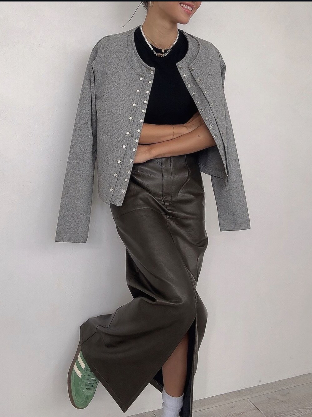 ALEXIA STAM(FLAGSHIP STORE OMOTESANDO)のカーディガン/ボレロ「Layered Snap Cardigan /レイヤードカーディガン」を使ったコーディネート