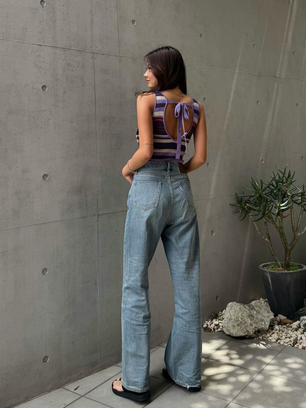 ALEXIA STAM(FLAGSHIP STORE OMOTESANDO)のTシャツ/カットソー「Rib Stripe Knit Bodysuit /リブストライプニットボディスーツ」を使ったコーディネート
