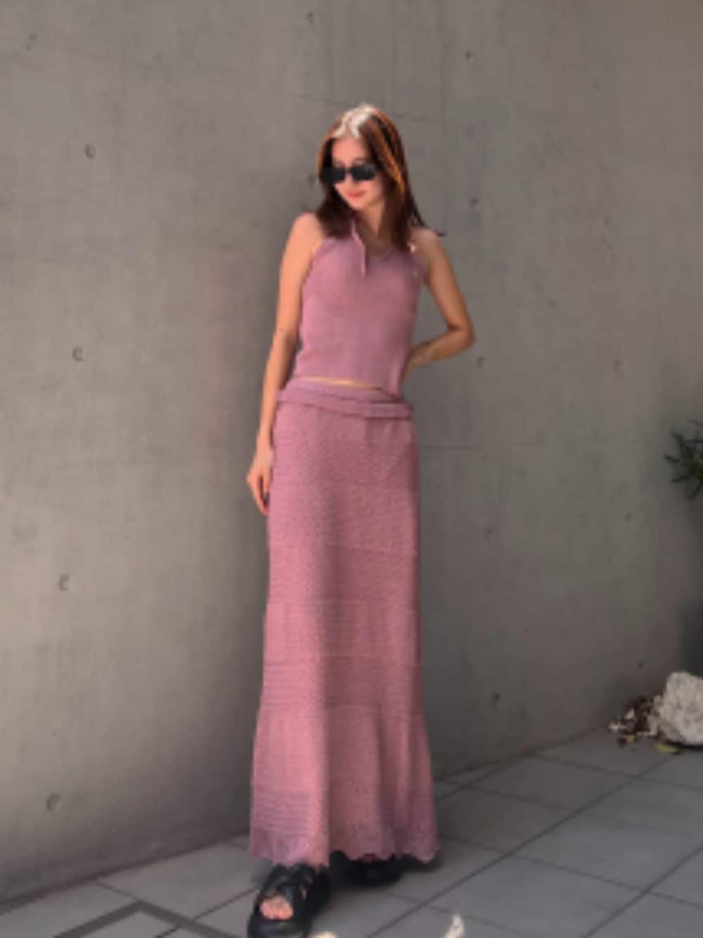 ALEXIA STAM(FLAGSHIP STORE OMOTESANDO)のキャミソール「Halter Neck Knit Top /ホルダーネックニットキャミ」を使ったコーディネート