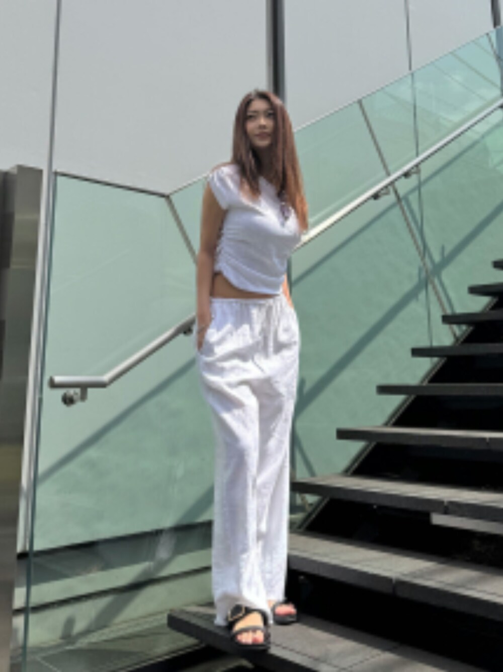ALEXIA STAM(FLAGSHIP STORE OMOTESANDO)のTシャツ/カットソー「Side Gather Boat Neck Tee /サイドギャザーT」を使ったコーディネート